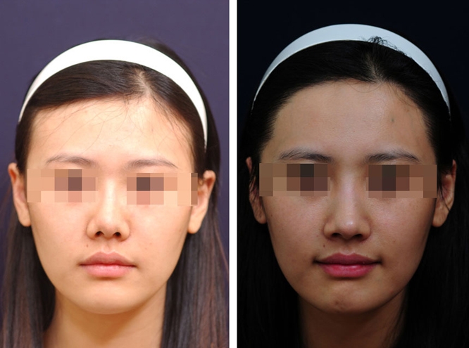 3、隆鼻:放入假体达到隆鼻效果。