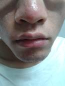 去年去了整形科医院。医院的大夫(两位)详细问了我的病史和治疗史,(本人长痘初期用过维胺酯维E乳膏,貌似不含激素,此外基本没用过药。)两位医生都先后诊断我为脂溢性皮炎。先说位,她给我开了阿卡米星洗剂(抗生素类的吧,杀菌消炎),莲冰软膏+夫西地酸乳膏调匀纱布外包敷用(莲冰拔毒用的,可能是要拔深处的毒),用了小半年感觉不那么肿了,但还是很红。于是挂了医生号,找第二位医生。她为我开了甲硝唑洗剂+一个杀菌的好像叫硫酸庆大霉素,用了一个月觉得效果明显,红肿变淡了,但还是不去根,存在周期性红肿现象,即鼻子微红三四天,然后红肿一两天。(下附图片,人丑勿怪。。。)