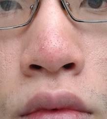 从高一开始长了暴多的痘痘,到现在研三了,除了鼻子基本好了。但就是这个鼻子,一直红红的,并且发肿,还很痒,一天能出N多油!我的鼻子基本就是红,细查之下是以几个点为中心的红,但在鼻子表现为红彤彤一片,偶尔会长了一两个小小的白色的脓包,自己就破了。鼻子表面坑坑洼洼像橘子皮一样,有少许黑头和大量的乳白色油脂物,毛孔都被这些油脂物堵塞住了。细看貌似没有红血管,红血丝。没增生。因为之前满脸痘痘所以不知道究竟何时恶化成酒糟鼻的,估约下来应该有四五年了。